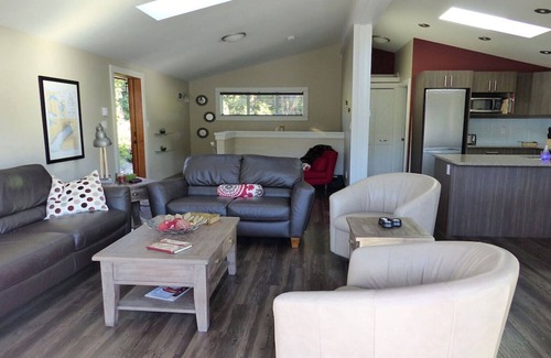 Deluxe large 3 bedroom, ocean view cottage rental. This fully appointed cottage sleeps up to 6. The main level is a large open space with 2 sliding patio doors leading to a beautiful large deck, BBQ & spectacular ocean view. The kitchen is fully equipped has granite counter tops and looks out to the ocean. There's a cozy electric fire place in the living room, and a full bathroom. The bedrooms and second full bathroom are located on the lower level. There is also a small nook containing a bar fridge and sink. The 3rd bedroom has a comfy pull out sofa bed (double full memory foam mattress) and a TV with Blu-Ray player. The bedrooms have queen beds, sliding patio doors and partial ocean views. There is a portable fire bowl located on the lower lever, with chairs. Axe and firewood are not supplied, however firewood can be purchased at the San Juan Market store or along the main road (Parkinson Rd.).