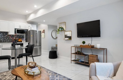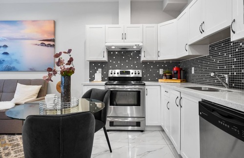 LUXURIOUS 2 BEDROOMS SUITE: Relax & enjoy the brand new suite w/ upscale furnishings; comfy rug & brand new versatile sofa bed. Fully equipped kitchen w/ marble flooring w/ modern scandanavian feel. Bright open suite w/ private outdoor patio & romantic overhanging string lights. This spa like suite offers desk area, in-suite laundry, & 2 beautiful bedrooms. Self check-in, wifi & tv available. Minutes to shopping & amenities, 15 minutes to Fort Langley and Aldergrove, & 40 minutes to Vancouver.
