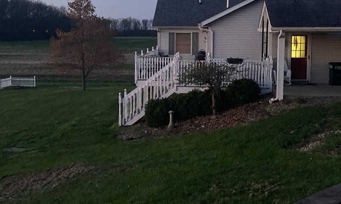 Enjoy a beautiful sunrise or cool evening refreshment on the large private deck area overlooking farm fields, serene woods, and the best of what nature has to offer. This property is conveniently located mid-way between Seymour, Columbus, and North Vernon, Indiana. The location offers a 60-minute drive to Indianapolis, Louisville, and Bloomington and 75 minutes to Cincinnati to enjoy major sporting events or attractions like the Kentucky Derby, Indianapolis 500, or Cincinnati Zoo. The property is also close to shopping and outdoor districts like Brown County State Park (Nashville, IN), historic Madison, Indiana, the outlet mall in Edinburgh, Indiana, and Willow Creek Event Center in North Vernon for fun day trip excursions or special events. All the comforts of home in a working farm setting.