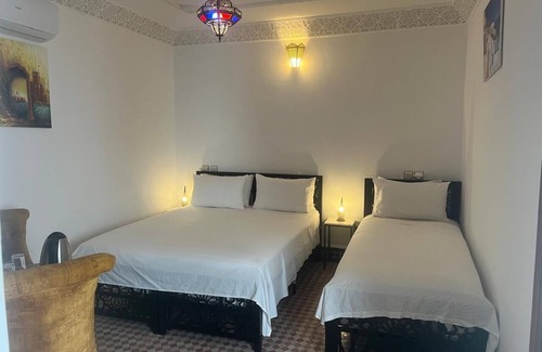 Nestled in Fes, this delightful riad offers a nice bedroom with 1 queen bed and 1 king bed. Guests can enjoy amenities like AC, heating, and a hair dryer. The bathroom features a shower and hair dryer for added convenience. Experience what Fes has to offer with a stay at our riad.