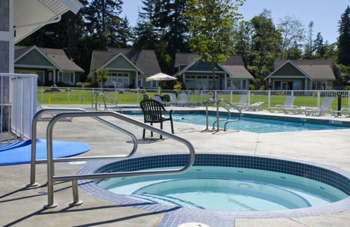 This Qualicum Landing family friendly cottage is perfect for any getaway! Located in a safe gated community. Bring the whole family including fur babies. Relax fire or pool side, walk the private beach, lounge on your patio & BBQ fresh west coast fare. Sleeps 7 - 3bdrms - 4 beds & pull out sofa. 10 min from downtown Qualicum, 30 min from Mt. Washington & surrounded by golf courses. Tailor your vacation to fit you!