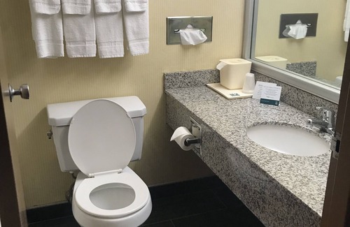 Quality Inn offers 90 accommodations with coffee/tea makers and complimentary weekday newspapers. Beds feature premium bedding. LED televisions come with premium cable channels. Bathrooms include shower/tub combinations, complimentary toiletries, and hair dryers.