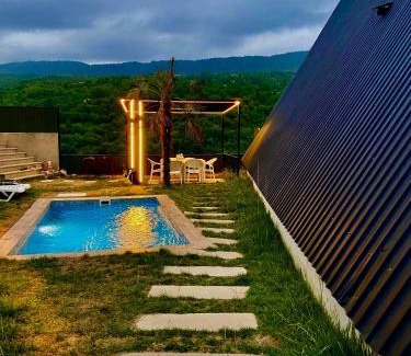 Food & DrinkTea/Coffee maker, Bottle of waterBathroomConditioner, Shower cap, Body soap, Shower, Towels, Bathtub or shower, Bidet, Toothbrush, Private bathroom, Toilet paper, Hairdryer, Toilet, Free toiletries, ShampooMedia & TechnologySatellite channels, Flat-screen TV, Cable channels, TV, Streaming service (like Netflix), Pay-per-view channelsGeneralSmoke Alarm, Mosquito net, Carbon monoxide detector, Private entrance, Air conditioning, Carbon monoxide sources, Tile/Marble floor, Soundproof, Iron, Fire extinguisher, Heating, Ironing facilities, Trash cansKitchenMicrowave, Kitchenware, Washing machine, Refrigerator, Kitchen, Cleaning products, Wine glasses, Dining tableLiving AreaDining area, Sitting area, SofaOutdoorsOutdoor dining area, Patio, Private pool, Outdoor furniture, BarbecueBedroomWardrobe or closet, Extra long beds (> 6.5 ft), Childrens' cribsViewPool view, View, Mountain viewBuilding CharacteristicsDetachedRoom AmenitiesSofa bed, Non-feather pillow, Fold-up bed, Hypoallergenic pillow, Clothes rack, Drying rack for clothing, Socket near the bedPool and SpaPool with a view, Pool towels, Heated poolSafety featuresAir purifiersPhysical distancingSingle-room AC for guest accommodationCleanliness & disinfectionHand sanitizer |