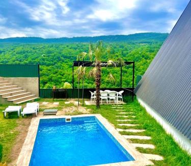 Quba Harmoniya provides air-conditioned rooms in Quba. This property offers a private pool and free private parking. This 5-star chalet offers private entrance. The chalet provides guests with a patio, mountain views, a seating area, satellite flat-screen TV, a fully equipped kitchen with a microwave and a fridge, and a private bathroom with bidet and a hair dryer. At the chalet complex, all units are soundproof. The rooms are equipped with heating facilities. Guests can also relax in the garden. Qabala International Airport is 240 miles away.