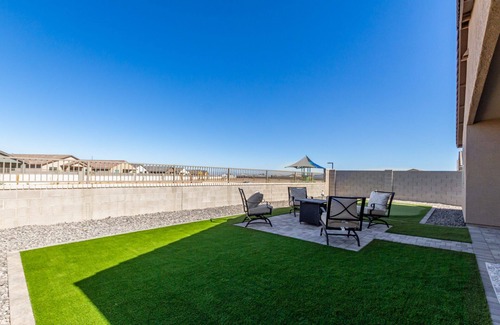 Relax and enjoy this newly built home in Queen Creek. This home will accommodate 10 guests. Home has four bedrooms and three bathrooms, with all the needed items for your convenience. Great mountain and desert views with a park like backyard that has a manicured putting green. Adjacent to walking trail and playground.