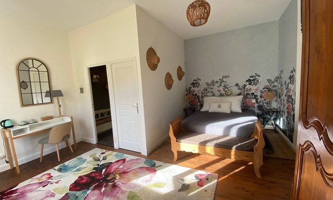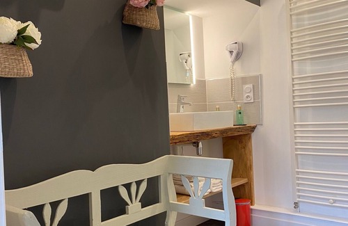 Our gite, adjacent to the guest house and with independent access, is designed for 6 people. With its garden, hammock, deckchairs, garden furniture and barbecue, you will have a great time with your family or friends. A beautiful living room with fireplace, 3 spacious bedrooms and two shower rooms make up this old building of 1850.