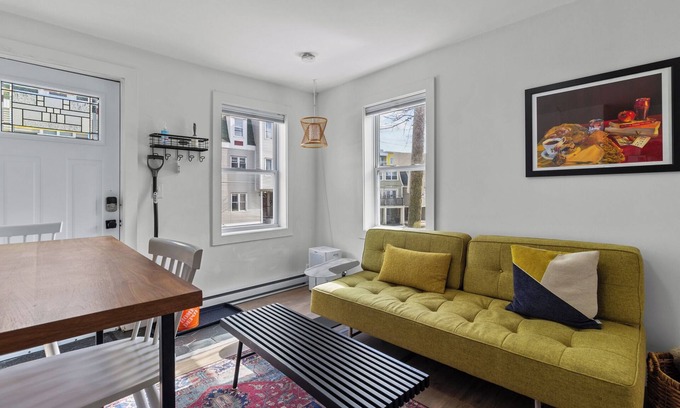 Relax and unwind in the inviting living area, featuring bright windows with blackout blinds, offering a perfect balance of natural light and privacy.