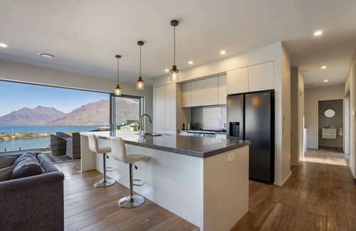 Welcome to your elevated Queenstown retreat, perched above the lake with uninterrupted mountain views. This spacious four-bedroom home sleeps up to 12 guests, making it the perfect stay for families or groups seeking comfort, space, and postcard-worthy scenery. Enjoy the outdoor deck, two full bathrooms, and cozy living areas designed to help you unwind after a day of exploring.
