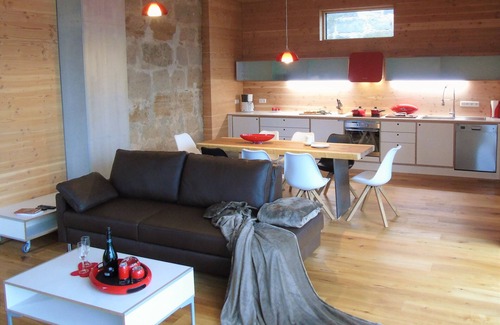 In the own carpentry built eco designer furniture made of natural wood, a stove, oversized bed, private outdoor hot tub, lots of light and space in the house and on the high terrace, swimming pond in the garden - these are just a few of the nice things, the holiday here in make the spring so pleasant, in every season.