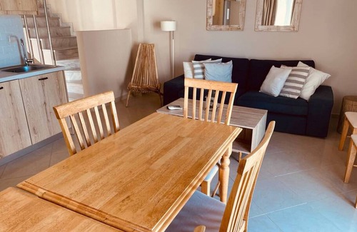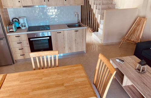 This elegant & luxurious residence is fully equipped and able to accommodate up to 8 people (2 people sleep in the lower bedroom, with single beds) seconds (yes yes seconds) away from the sandy beach of famous touristic resort of Platanias.