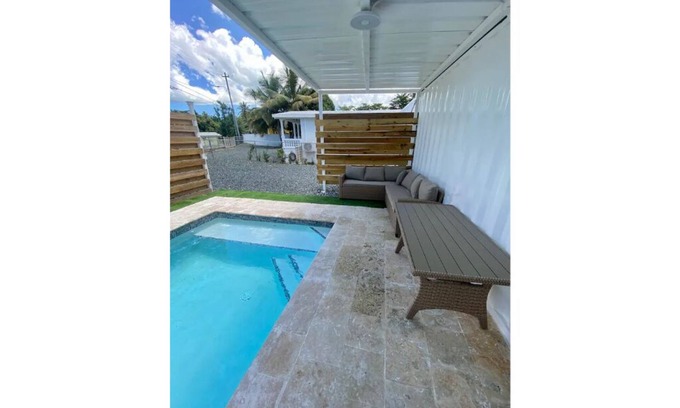 Cousy container house just next to the table rock beach and playa cañones. Fully equipped with a small kitchen and private pool just for you and your companion. Enjoy the coast scenery with over 10 restaurants end beach bar just 10 minutes away from Rincon and Aguadilla