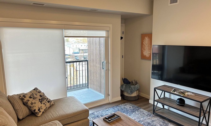 Welcome to our bright and recently constructed downtown condo that we call home! Beautiful view of the mountains and located only a short walk away from the bus loop, lakeside boardwalk, and all downtown restaurants and shopping. Contains washer/dryer, comfortable sofa, TV, appliances, and Wifi.