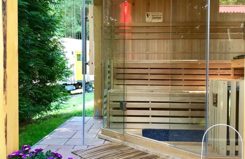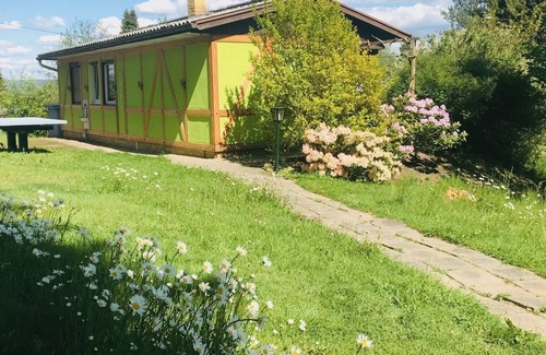 Within walking distance can be reached a free natural swimming pool. Bad Elster with its many offers, including the new brine bath 3 km away. The bungalow has a fully equipped kitchen, a shower room, living room with cozy fireplace and a bedroom with double bed and bunk bed. The large meadow invites you to play or relax. Czech Republic is very close and always worth a visit. From autumn 2019, the new sauna can be used. Daily train connections to Carlsbad Plauen Zwickau with the Vogtlandbahn. Even in winter, thanks to the night storage heaters, as well as modern infrared heating and the large stove, a nice holiday possible. The surrounding area invites to hiking, cycling, mushroom picking and many other things.