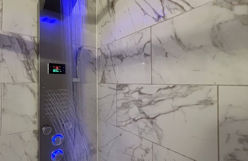 New Rainfall Waterfall Shower Head Rain Massage System with Body Jets, Stainless Steel Bathroom Shower (this alone is worth the stay)