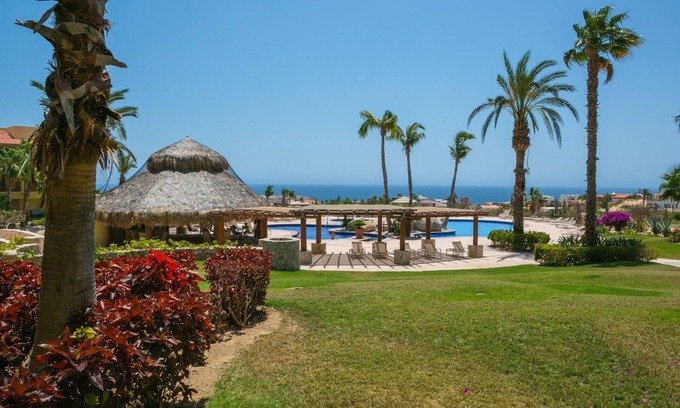 Experience utter relaxation and peace of mind in this idyllic Cabo condominium. This is a one bedroom condo that has a converted second bedroom added to an enclosed porch. Second bedroom has it's own independent A/C. You can walk out the living room patio door, along manicured grass and step right into the pool within 30 paces. Beyond the pool is a hot tub in which you can absorb the breathtaking views of the emerald green golf course, the sparkling azure Sea of Cortez and the picturesque Baja landscape.
