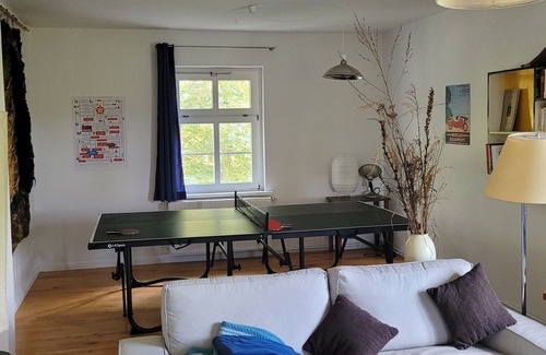 You can make the most of the outdoors with the garden and BBQ grill at this 1453-sq-ft apartment. As for the great indoors, you can try your hand at table tennis, or enjoy the WiFi and TV.