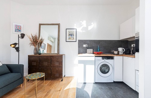 A 23 m2 one bedroom ideally located 5 minutes away from the Promenade, the beach and the Old Town with AC and Parking.SpaceWelcome to our Downtown Apartment,Located on the second floor without elevator, you will find all the comforts: proximity to touristic places, A/C, secure parking 5 minutes away by walking, equipped kitchen, washing machine, dryer, dishwasher, Wi-Fi... This apartment consists in a bedroom with a comfortable double bed (Queen size, retractable and 80 cm away from the floor in night position), bathroom with shower, kitchen open on the living room.. Please note: once the bed is lowered, access to the bathroom can only be done by going over the bed.Kitchen is fully equipped: fridge, hotplates, oven, microwave, dishwasher, coffee machine and kettle. AccessApartment is ideally located next to Massena Square, less than 5 minutes away from Massena’s tram.The apartment is fully equipped. Bed linens and bathroom towels are provided, and you will have access to the complete accommodation.InteractionBnb Groom Services’ team is glad to greet you in Nice.Keys will be given to you in our office, Bnb Groom Services. We can also organize a check in on site depending on your arrival time and our availability. Don't hesitate to share you arrival information as soon as you have it.We will be there to advise you before and during your stay, available by phone or by email to answer any questions and make sure you spend a great stay at your home away from home.NeighborhoodMassena Square and « La Piétonne » (Massena Street, a pedestrian street with lots of shops, cafés and restaurants) are popular and lively areas of Nice. This situation offers you the opportunity to do all your food shopping by walking, as well as a multitude of restaurants and many shops… and of course beaches and the Promenade des Anglais at 5 minutes on foot. Walk along Massena Square and you will arrive at the entrance of the Old Town and its famous flower market. Everything is on your doorstep to fully enjoy your stay in Nice. TransitAccess to accommodation from the airport is possible by tram: take the line n°2 in direction of Port Lympia and stop at Durandy. Journey takes only 25 minutes and this stop is 300m away from the apartment. You can also ask us to arrange a private car transfer from the airport to the apartment.Train station « Nice Ville » is 15 minutes away on foot, allowing you to discover Antibes, Cannes, Grasse, Monaco, Menton or even to go in Italy easily.Access to the building is also possible by car. You can park in the parking of the shopping center Nice Etoile, only 5 minutes away by walking, where we have an access card.IMPORTANT - RULES OF PROCEDURE :For security reasons, before arrival an online check-in should be completed via our Yaago application in which the person in charge of the booking should provide identity document.The accommodation should be returned in a suitable state of use, respecting the premises, the neighborhood, as well as basic rules of cleanliness and hygiene.Parties and noisy evening gatherings are not allowed.Smoking isn’t allowed inside.Non-compliance with these instructions may result in a deduction from the deposit or cancellation of the stay.Thanking you in advance for your kind collaboration.
