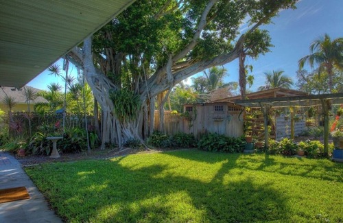 Say hello to your private 2-bedroom NW Bradenton home. This quaint clean Florida style house is one half mile from Desoto National Monument; 1.5 miles from Robinson Preserve and 5 miles from Anna Maria Island and its famous beaches. You are ten minutes away from Cortez fishing village which offers fresh catch at the markets or prepared in several fun family restaurants. Grocery stores and restaurants are nearby. Downtown Bradenton is 10 minutes away; Sarasota is 20 minutes away. Stay in this comfortable relaxing home surrounded with shade from native trees and foliage. Enjoy your coffee and breakfast on the recently enclosed lanai. The patio has a Weber gas grill, outdoor seating, herb garden, copper fire pit, koi pond and fountain.