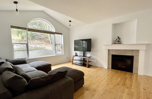 As you settle into the place, you'll find a living room, a dining area, a BBQ grill, and a fireplace. Connect to the free WiFi, or get cozy in front of the Smart TV; there's also video games. Bathroom amenities include a hair dryer, towels, and toilet paper. The kitchen is equipped with an oven, a stovetop, and a refrigerator, as well as a coffee maker, an electric kettle, and a microwave. And because there's a washer and dryer, you can go a bit lighter on your packing. Other amenities include bed sheets, air conditioning, heating, and a dining table.