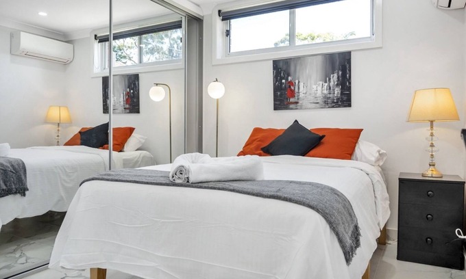 Forget your worries in this spacious and serene space. Take a quick short break with a group of friends or family closeby in Sydney. Located at the end of a cul-de-sac, this quiet home greets you with the sound of birds in the neighbouring park. Walk in to the newly renovated oversized home with modern styling, huge backyard entertaining area, complete with BBQ facilities, two living rooms and three dining areas. Enjoy a relaxing time with a 65inch HD TV, complete with Netflix and more.