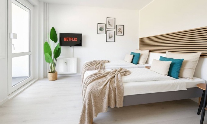 Quiet & modern 2-room apartment for 4 people opposite the park is located in Stadtbezirk West. Quiet & modern 2-room apartment for 4 people opposite the park provides accommodation, featuring Laundry, Security/Safety, Bedding/Linens, among other amenities. This Apartment features Laundry, Security/Safety, Bedding/Linens, to make your stay a comfortable one.