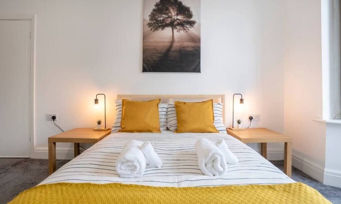 Spacious 4-bed, 2-bath apartment in a quiet residential area of Bispham, just 6 mins by car to Blackpool North Pier and the promenade. Perfect for families, groups, and workers, with 3 double beds and 1 single across 4 bedrooms. Newly renovated with modern furniture, fully equipped kitchen, Smart TV with Netflix, towels, toiletries, and Wi-Fi. Tram stop 5 mins walk. Free parking near entrance. Sleeps up to 7 adults.