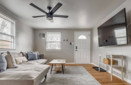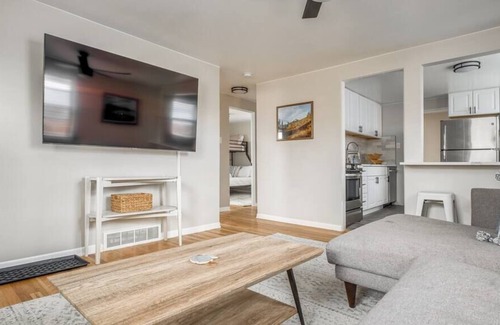 Inside, you'll find an updated one-story home that’s been transformed into a cozy retreat with ample natural light and contemporary designs that complete the relaxed suburban vibe. This home is perfect for small or larger group stays, with a fully-stocked kitchen for making delicious meals, large flat-screen TV for movie nights, and a private backyard perfect for enjoying the fabulous Colorado weather.