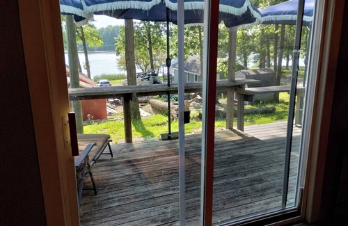 There is no TV or wi-fi, as I wanted the cabin to be an escape from technology. So, if you have to have wi-fi, bring a hotspot or use the wireless from your carrier, though the bars will be few. Shady Haven Resort is a lake trailer park with the cabins on and above the lake. Many trailers in the back of the resort are empty and slowly being removed. The cabin is not right on the lake but sits above on a hill at the corner of Hummingbird Blvd and Big Bass Run and has a beautiful view. I just installed a cedar private pier at the end of Big Bass Run. Boat access is on one road over W 25 N at the end of N Hazelwood Dr.
