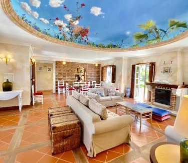 Quinta das Tílias is located in Santiago do Cacém, just 11 miles from Parque Natural do Sudoeste Alentejano e Costa Vicentina and 20 miles from Pessegueiro Island. With pool views, this accommodation provides a patio and a swimming pool. The country house also offers free Wifi, free private parking, and facilities for disabled guests. Offering a terrace and mountain views, the spacious country house includes 4 bedrooms, a living room, satellite flat-screen TV, an equipped kitchen, and 3 bathrooms with a bidet and a bath. The comfortable, air-conditioned accommodation also comes with soundproofing and a fireplace. This country house is allergy-free and non-smoking. Guests at the country house will be able to enjoy activities in and around Santiago do Cacém, like walking tours. Guests at Quinta das Tílias can enjoy cycling and hiking nearby, or make the most of the garden. Sao Clemente Fort is 29 miles from the accommodation, while Santiago do Cacém Castle is 2.1 miles from the property.