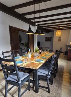 Food & DrinkMinibar, Bottle of water, Tea/Coffee maker, Wine/ChampagneBathroomBathtub or shower, Shower, Bidet, Toilet, Private bathroom, Hairdryer, Towels, Walk-in shower, Shampoo, Shared bathroom, Bathtub, Toilet paper, Body soap, Free toiletriesGeneralPrivate entrance, Heating, Safe, Trash cans, Hardwood or parquet floors, Ironing facilities, Fan, Iron, Smoke Alarm, Fire extinguisher, Tile/Marble floorMedia & TechnologyTV, Flat-screen TV, Video games, Streaming service (like Netflix)OutdoorsBalcony, Terrace, Outdoor dining area, Outdoor furniture, Barbecue, PatioKitchenCoffee machine, Dishwasher, Electric kettle, Kitchenware, Wine glasses, High chair, Microwave, Cleaning products, Dryer, Oven, Stovetop, Refrigerator, Toaster, Washing machine, Kitchen, Dining tableLiving AreaFireplace, Sofa, Sitting areaViewRiver view, View, Mountain view, Pool view, Garden viewBedroomWardrobe or closet, Childrens' cribs, LinensAccessibilityUpper floors accessible by stairs onlyBuilding CharacteristicsDetachedRoom AmenitiesClothes rack, Drying rack for clothing, Sofa bed, Socket near the bed, Non-feather pillowEntertainment & Family ServicesBoard games/puzzlesPool and SpaPool with a view, Saltwater pool, Pool towelsInternetGame console - PS4Cleanliness & disinfectionHand sanitizer |