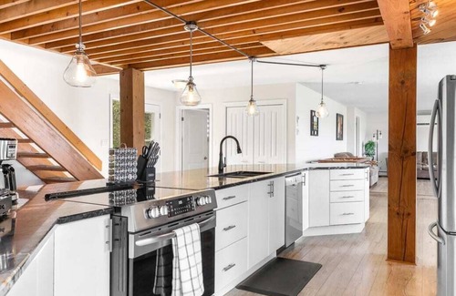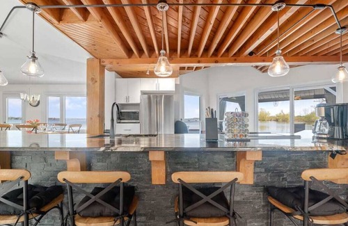 Wake up in the morning to beautiful sunrises with a mug of tea in hand and watch the swans float serenely by only feet away from your spot on the dock. This lovely property features a hot tub overlooking the water, fire pit, outdoor dining and BBQ, kayaks, SUPs, canoe, and public boat launch. If the weather turns, you'll find plenty to do indoors including two TVs, a foosball table, reading material and games.