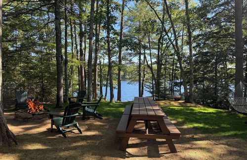 Enjoy your morning coffee on the porch listening to the call of the loons, curl up in the comfy rope hammock with a good book, or cozy up to the fire pit for campfire songs and s'mores.