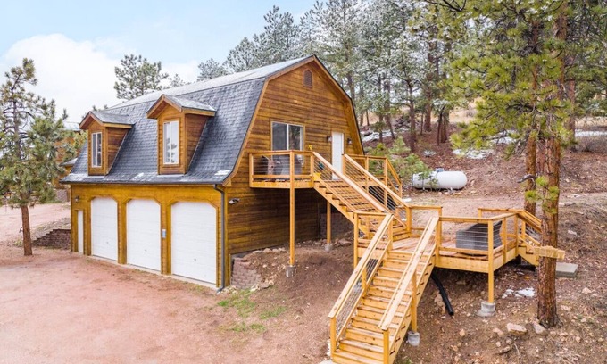 Nestled in the mountains of Bailey, CO, this 3-bedroom, 1-bath apartment offers breathtaking views and a fun, quirky design. Perfect for nature lovers and adventure seekers, it's a cozy retreat with personality. Relax in the stylish space, take in the mountain scenery, and enjoy easy access to hiking, skiing, and outdoor adventures. Experience a one-of-a-kind getaway in the heart of the Rockies!