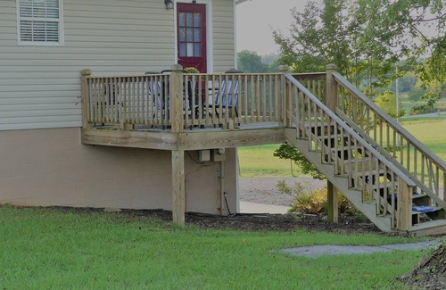 The "Cottage of Walland" as we call it, has over 1800 sq. ft. of living space. 1224 upstairs and 612 down stairs. There is a very comfortable living room, a full kitchen, den/tv room, work space and acres of outside foothills scenery. There is a beautiful view of Chilhowee Mt. and lots of farm land beauty. The living room, kitchen, dining room, washer and dryer, 2 bathrooms and 3 bedrooms are on the main level of the house. Downstairs has a den/tv room and 1 bedroom with a work space. You can enjoy sitting inside while reading, watching tv or just relaxing in this quite country setting. Or you can spend your time outside on the 3 acres that it is located on, enjoying the scenery and possibly watching the wild life. Sitting on the back deck is my favorite here! There is a beautiful view of the foothills of the Smokies along with the farmland that surrounds this property. You can possibly see, deer, eagles, raccoon, turkey, coyote and more. There is plenty of room to play frisbee, volleyball, throw football, baseball or a game of cornhole. There is a fire pit to roast hot dogs or marshmallows, or you can just sit and listen to the fire pop and crackle in the moonlight. A charcoal grill will also be available. Biking is also a popular activity in this area. Old Walland highway is a much biked road and just a couple miles away. All the surrounding major city's are within a 20-25 minute drive including, Pigeon Forge (25), Sevierville (20), Knoxville (Downtown, south or west) (20), Maryville/Alcoa (20), Townsend (20), Cades Cove (25), Seymour (10) Gatlinburg (40). Walmart, Walgreens, CVS and lots of eatery's within 10-15 mins.