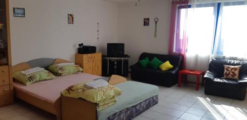 Róbert Apartmant is located in Balatonalmádi, just 15 miles from Tihany Abbey and 21 miles from Bella Stables and Animal Park. This apartment provides water sports facilities, a garden, as well as barbecue facilities. There's a sun terrace and guests can use free Wifi and free private parking. Opening onto a patio with garden views, the spacious apartment consists of 3 bedrooms. Providing a balcony with lake views, this apartment also offers a satellite flat-screen TV, a well-equipped kitchen with a dishwasher, an oven, and a microwave, as well as 1 bathroom with a bath and a hair dryer. The accommodation has a fireplace. Guests at the apartment will be able to enjoy activities in and around Balatonalmádi, like pub crawls. A water park is available on-site, and both cycling and walking tours can be enjoyed close to Róbert Apartmant. Bebo Aquapark is 22 miles from the accommodation, while Balatonfüred train station is 11 miles away. Budapest Ferenc Liszt International Airport is 76 miles from the property.