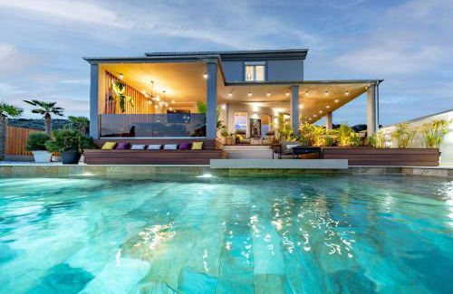 Food & DrinkMinibarBathroomHairdryer, Shower, Bathtub or shower, Toilet paper, TowelsMedia & TechnologySatellite channels, Streaming service (like Netflix), TV, Flat-screen TVGeneralAir conditioning, Heating, Private entrance, Hardwood or parquet floors, Key access, Trash cans, IronKitchenCoffee machine, Dining table, Dishwasher, Washing machine, Oven, Microwave, Kitchenware, Dryer, Refrigerator, Kitchen, Stovetop, Wine glassesLiving AreaSitting area, Dining area, SofaOutdoorsOutdoor dining area, Private pool, Patio, Outdoor furniture, Barbecue, TerraceViewView, Pool view, Garden viewActivitiesSaunaBedroomWardrobe or closet, Childrens' cribs, LinensBuilding CharacteristicsDetachedRoom AmenitiesDrying rack for clothing, Socket near the bedPool and SpaHeated pool, Pool towels, Plunge PoolPhysical distancingSingle-room AC for guest accommodation |