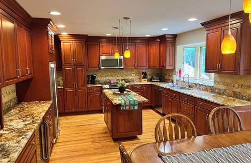 Enjoy a day at the Saratoga Springs Racetrack, the buzzing nightlife of downtown Saratoga and all the delicious restaurants! There is never a shortage of incredible things to explore! After a long day, escape to our gorgeous home and relax on the back porch by the pond. The pool unfortunately is not open and will be covered with a tarp.
