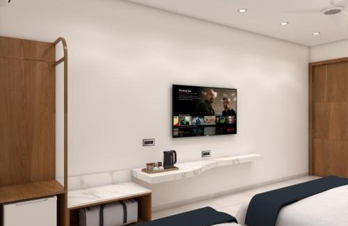 Featuring 3-star accommodations, Radha Ratna Hotel is located in Ayodhya, 1.6 miles from Ram Mandir and 6.1 miles from Faizabad Train Station. Guests can enjoy city views. The hotel will provide guests with air-conditioned rooms offering a desk, an electric tea pot, a safety deposit box, a flat-screen TV, a terrace and a private bathroom with a bidet. All rooms feature a closet. Ayodhya Airport is 5 miles from the property.