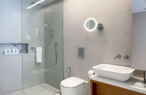 Bathrooms include showers with rainfall showerheads, designer toiletries, complimentary toiletries, and hair dryers. Business-friendly amenities include desks and desk chairs. Additionally, rooms include coffee/tea makers and irons/ironing boards.