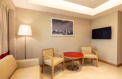 Food & DrinkMinibar, Tea/Coffee maker, Bottle of waterBathroomToothbrush, Bathtub, Body soap, Toilet paper, Walk-in shower, Shampoo, Free toiletries, Hairdryer, Towels, Private bathroom, Guest bathroom, Slippers, Bidet, Bathtub or shower, Bathrobe, Shower, Toilet, Additional bathroom, Conditioner, Shower capGeneralCarpeted, Suit press, Safe, Ironing facilities, Soundproof, Iron, Smoke Alarm, Laptop safe, Fire extinguisher, Carbon monoxide detector, Key card access, Interconnecting room(s) available, Air conditioning, Key access, Hypoallergenic, Trash cans, Carbon monoxide sourcesMedia & TechnologyTV, Satellite channels, Telephone, Flat-screen TV, Cable channelsServicesWake-up service, Wake-up service/Alarm clockLiving AreaSitting area, Sofa, DeskBedroomChildrens' cribs, Linens, Wardrobe or closet, Alarm clockKitchenElectric kettle, Coffee machine, Wine glassesViewCity viewAccessibilityEntire unit wheelchair accessible, Accessible by elevator, Upper floors accessible by elevatorRoom AmenitiesClothes rack, Adapter, Feather pillow, Hypoallergenic pillow, Sofa bed, Non-feather pillow, Socket near the bedPool and SpaPool towelsSafety featuresAir purifiersExclusive servicesFree gym access, Concierge services |