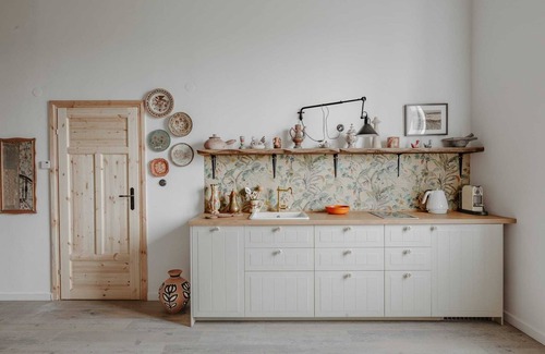 Rafalowka Farm is as much as 300 m2 of living space at the disposal of guests. The property guarantees accommodation for 10 people - an excellent choice for a family vacation outside the city. Decorated in the original Podlasie style, the space consists of a huge, pass-through living room, which is the heart of the entire folwark. In it there are comfortable sofas for sleeping, a large wooden table with chairs, inviting to feast together. From there you can move on to the ''Ladysmith'' - a bedroom with a separate kitchen, bathroom and hallway. Another space is the ''Pieczka'' bedroom, which includes a separate kitchen and bathroom shared with the ''Khazia'' (a bedroom with a kitchenette). The area of the Rafalowka Folwark is refined to the smallest detail - each addition is thoughtfully designed and blends perfectly with the whole, giving an extraordinary character to the place. Ingenious furnishings and the use of numerous decorative elements such as folkloric patterns, intriguing paintings and beautiful chandeliers will win the heart of anyone who visits here. The property also features multimedia amenities such as a TV with SmartTV and Wi-Fi Internet connection. The place is equipped with all the equipment necessary for a successful holiday. In addition, Folwark Rafalowka is pet-friendly - guests traveling with pets are welcome here. The building is surrounded by a huge garden where there is an outdoor table with chairs and a place to barbecue (kindling and coal provided), as well as a fireplace.
