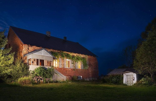 The Rafalowka Folwark is located in a Podlasie village amidst picturesque forests and vast green areas. Located 17 km from Bialystok, the Folwark remembering bygone eras and historical events of the early 20th century is a real time machine! Despite minor changes, the building has been preserved in its original form - thanks to which the red bricks, steel beams with tsarist emblems, and original tiled stoves (still working!) are over 100 years old! This is a real treat for lovers of unique places with a soul and unique history. The area around the manor is as much as 1.5 hectares of wonderful recreational space at the disposal of guests. Quiet village of Rafalowka, far away from the hustle and bustle of the city is the perfect place to relax surrounded by nature, beautiful birdsong and fresh air. The idyllic, almost magical atmosphere of the Folwark will awaken carefree, childhood memories in guests! The nearest grocery store is located 1.5 km from the hotel, while a tasty dinner can be had in a restaurant in Zagruszany (4 minutes drive). For those who are thirsty for a beach, the ideal choice will be located about 40 minutes by car from the apartment Siemaniowka Reservoir and the sandy beach of Stary Dwór. It is also worth visiting the Bialowieza Forest, located about 50 minutes away by car - there you can take a forest train for a ride through the forest and, admiring the bison, inhale the cleanest air in Poland!