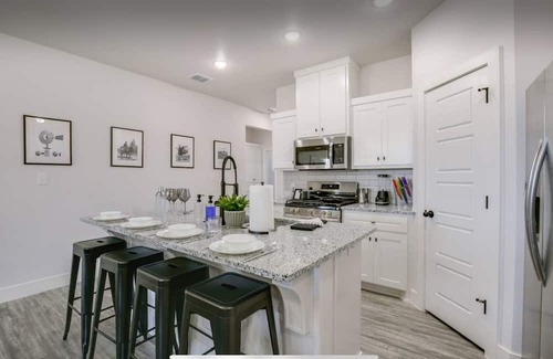 Gather your friends and family for the ultimate getaway! This brand-new construction 4-bedroom, 3-bath home sleeps 14 and features a private hot tub, and Game Room with 5 arcade games, ping pong, Instagram photo wall, and dual TV’s for sports viewing. From relaxing in style to entertaining endlessly, this retreat is fun, luxurious, and unforgettable. Only 5 miles from Texas Tech campus.