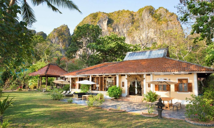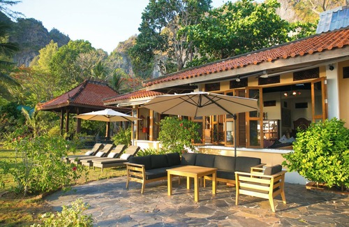 Beachfront home on Railay at exclusive Railei Beach Club. This home sleeps 7 with 4 air-conditioned bedrooms and 2 bathrooms.