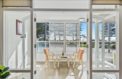 Immerse yourself in the coastal charm of Unit 2 Rainbow Pacific, a holiday rental perched on the waterfront of the picturesque Rainbow Bay. With the delightful Pacific blue ocean painting the perfect backdrop to your stay, enjoy stunning uninterrupted ocean views right from your sun room balcony.