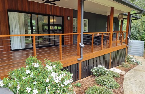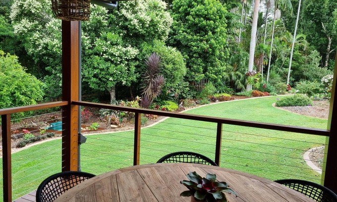Indulge in the serenity of the quiet, private location, where garden views provide a soothing backdrop for relaxation and rejuvenation. A delightful 9-minute stroll brings you to the charming village of Mapleton perched 400 meters above sea level on the edge of the Blackall Range, offering local amenities and delightful coffee indulgences.