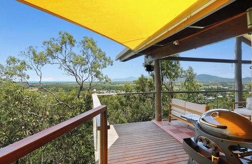 Experience Cairns from our treetop 3-bedroom home in Smithfield. This amazing architectural timber home is a true haven for nature lovers. Positioned high in the foothills, you'll feel like you're living in a treehouse. One of the highlights of this retreat is the breathtaking 270° panoramic view that greets you every morning. Watch the sunrise over the ocean, take in the emerald expanse of the rainforest, and marvel at the sparkling lights of Cairns as night falls. Don't be concerned about the warmth of Cairns. Every room is fitted with air conditioning and fans to keep you cool and comfortable. When you're ready to explore, you're just a few minutes' drive from some of Cairns' most iconic attractions. Embark on a short journey to the famous Skyrail Rainforest Cableway, your gateway to the charming Kuranda village. For adventure seekers, Cairns Wake Park is also just a stone's throw away, offering endless water sports fun. Need to pick up supplies or enjoy a meal out? The Smithfield Shopping Centre is conveniently close by. And for those seeking sun and surf, Cairns' northern beaches are a mere 5-10 minutes drive away, inviting you to relax on their pristine shores.