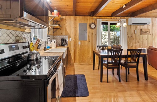 Step into our vintage cabin with wood-paneled walls, a retro VHS library, and a cozy fireplace—all paired with modern comforts like WiFi & AC. Nestled in the trees just 5 miles from Mt. Rainier, this chalet offers a relaxing hot tub, firepit, full kitchen & is pet friendly. With a main-floor queen bed, loft with queen + futon, and cozy spaces, it’s the perfect base for couples, families, or friends. Book now for an unforgettable getaway!