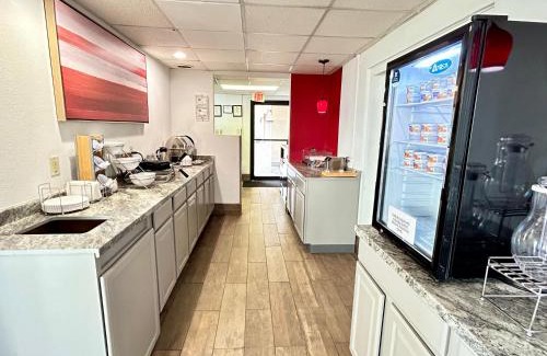 This hotel is located in the Shenandoah Valley and is 6 miles from downtown Harrisonburg. Guests can swim in the outdoor pool or use the free Wi-Fi in their rooms. Ramada Inn rooms include a microwave and refrigerator, which offers storage for late night snacks. The rooms also have a coffee maker for early risers. The Ramada provides guests with a daily continental breakfast. After breakfast guests can relax on the sun deck or work out in the gym. The Inn is within a 25-minute drive of the Massanutten Golf and Ski Resort. The James Madison University is 3 miles from the hotel.