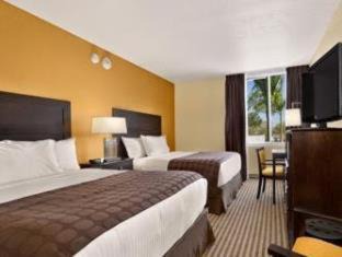 The Ramada by Wyndham Venice Hotel Venezia is located 5 minutes’ drive from the beach and has an outdoor pool with a bar on site. Dining is available on the property and all rooms have free Wi-Fi. A flat-screen cable TV is included in every room of this Venice hotel. A microwave and refrigerator are also provided in all rooms and suites are available. The Wave Grill offers American cuisine on site at the Venice Hotel Venezia Ramada by Wyndham. Guests will also enjoy access to a fitness center and a hot tub during their stay. The hotel is 15 minutes’ drive from Oscar Scherer State Park. The Venice Theater is less than 1 mile away.
